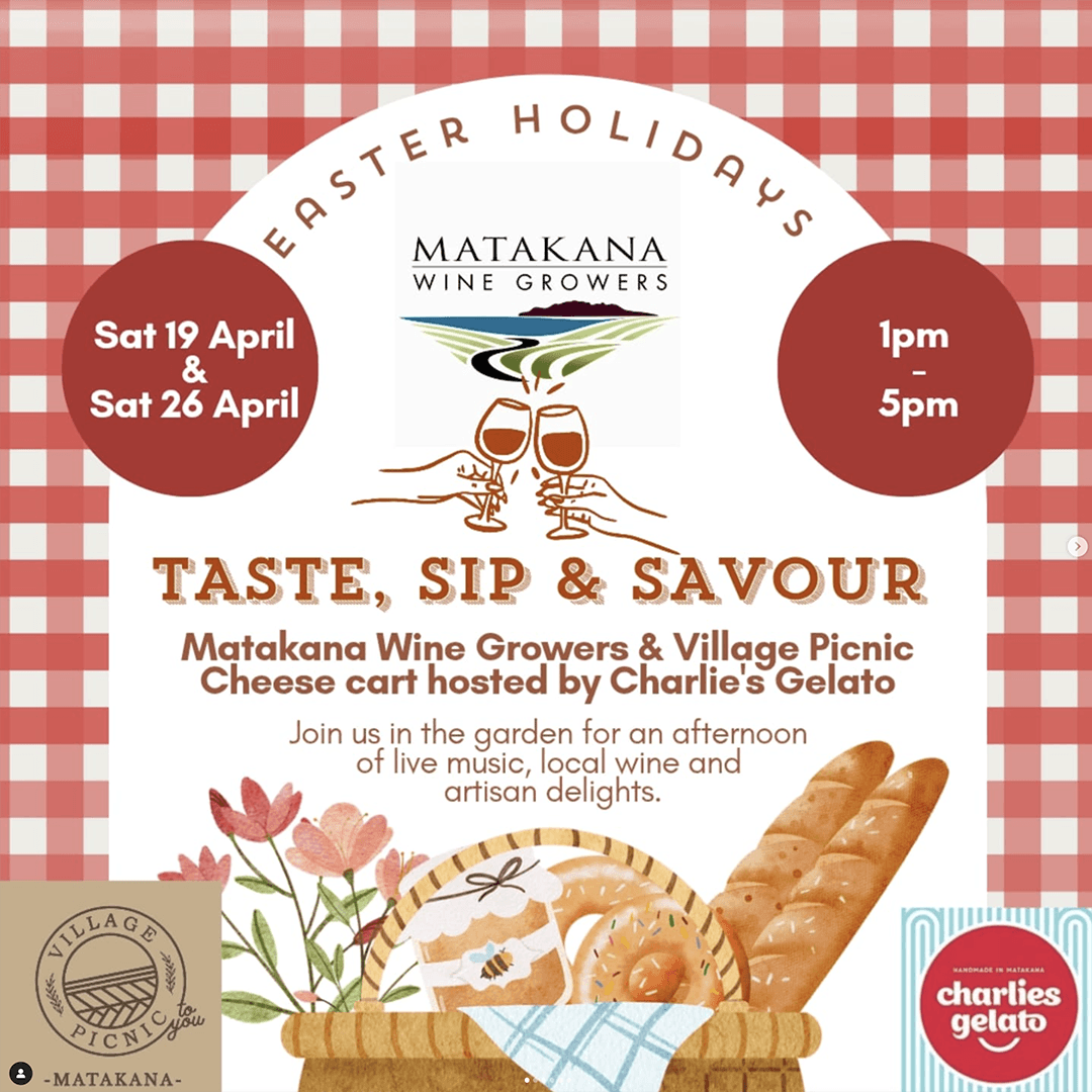 Charlies Gelato are thrilled to be hosting the team from Matakana Winegrowers for a couple of tasting events over the Easter Term Break.